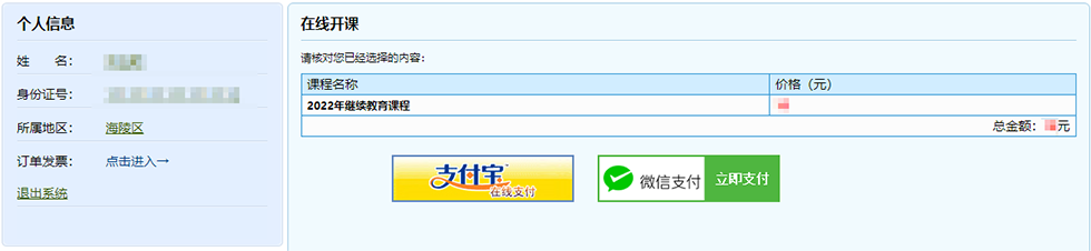 选择需要开通的年度,然后选择支付平台进行网上支付。支付成功后课程自动开通。